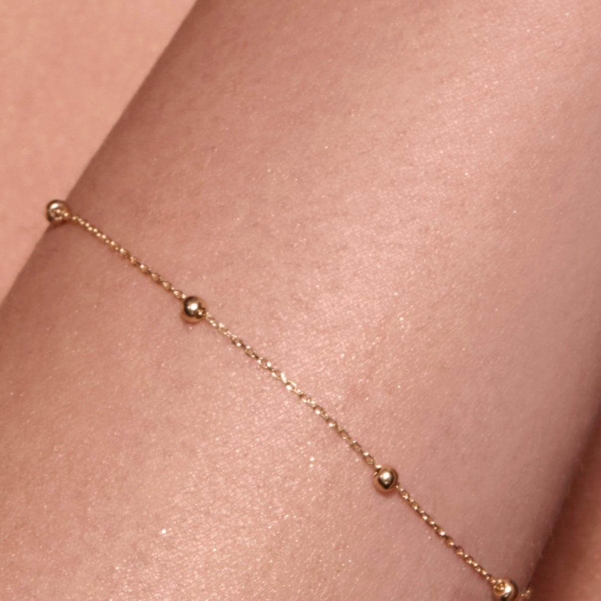 Schlicht und elegant – das „Ronda“-Armband aus 585er Gold setzt auf kleine, sanft glänzende Kugeln, die das Handgelenk stilvoll umspielen. Mit nur 0,78g ist es federleicht, aber ein wahres Schmuckstück für jeden Tag.